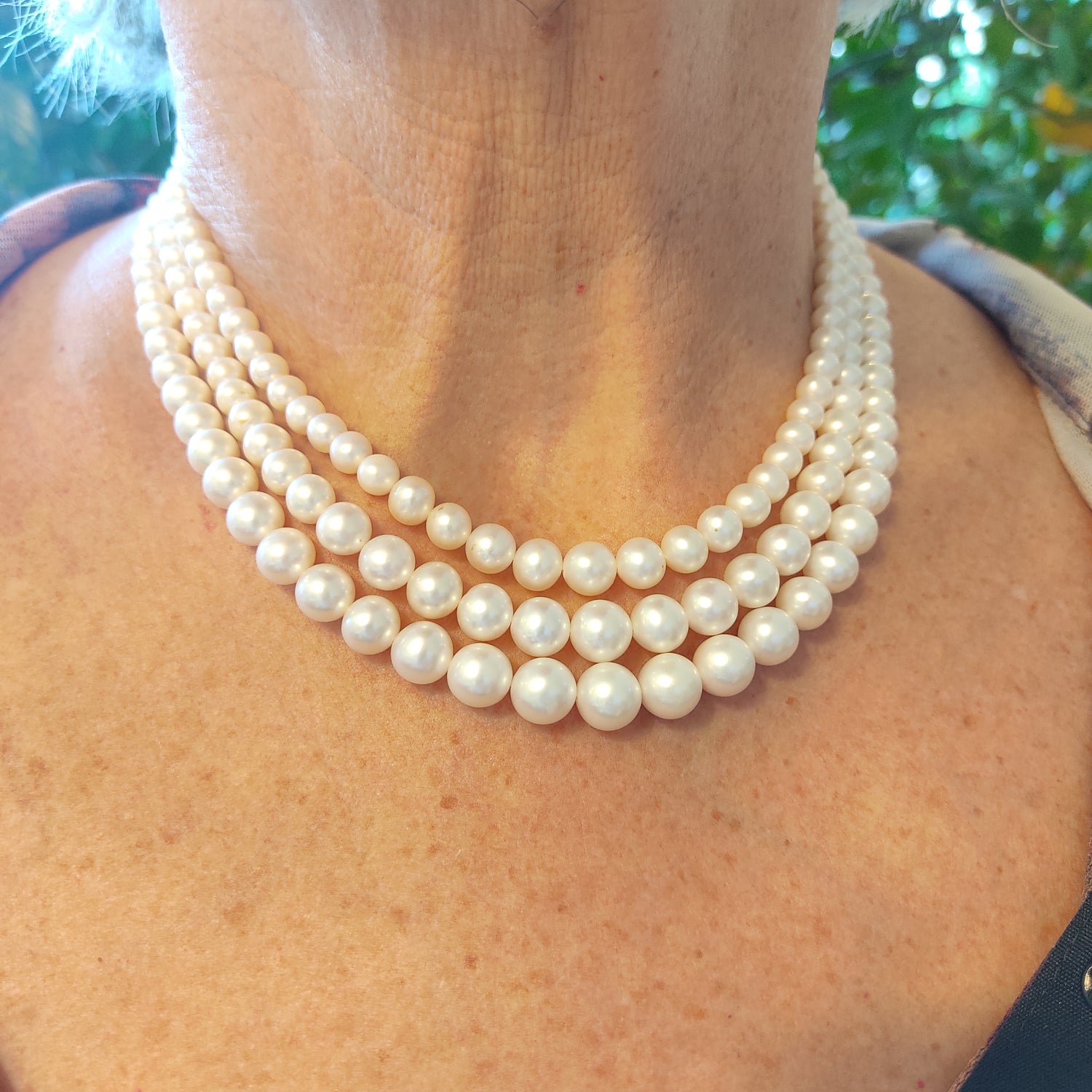 Collier de perles d'eau douce "en chute". Perles de diamètre 3 à 10 mm.